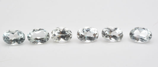Joli lot de topazes incolores dites blanches d'une très bonne clarté et d'un bel éclat. Elles ne sont pas calibrées précisément en 10x8 mm, mais leurs dimensions restent proches de cette échelle.